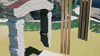 El día de hoy continué trabajando en los modelos de construcciones humanas, agregue pisos destruidos para que el jugador pueda escalarlos eventualmente, también agregue vigas y el marco de la puert...